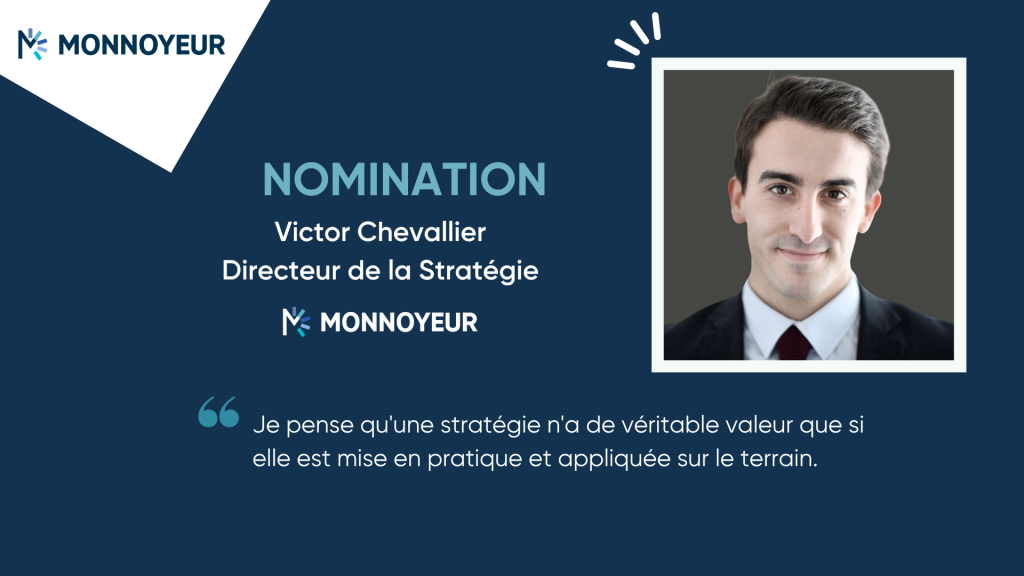 Dans le cadre de ses nouvelles fonctions, Victor travaillera en étroite collaboration avec Martin de Saignes, directeur des opérations de Monnoyeur, afin d’accompagner le Groupe et ses divisions dans la définition et la mise en œuvre de stratégies visant à renforcer la création de valeur sur l’ensemble de notre portefeuille.